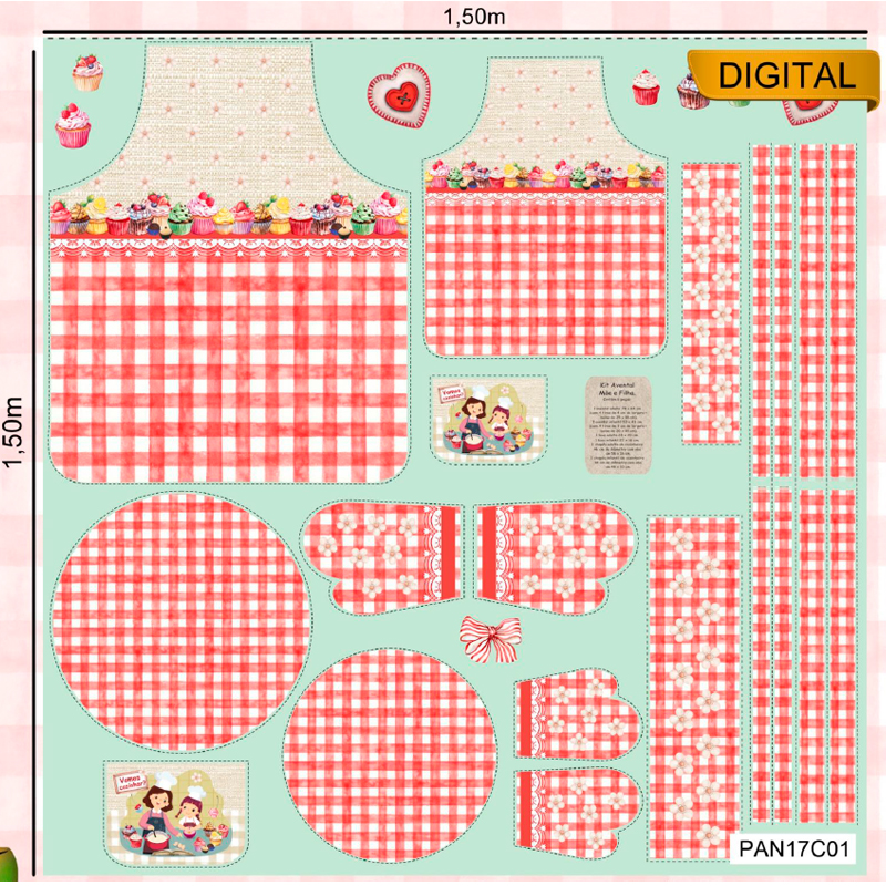 • Tela algodón digistal. - Panel vamos a cocinar - Rojo - B-FM - 1 metro